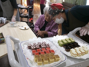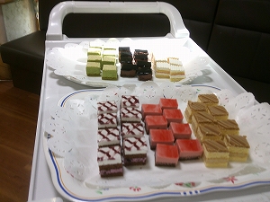 数種類のミニケーキをご用意し、お好きなものを選んでいただきバイキング形式で召し上がっていただきました。