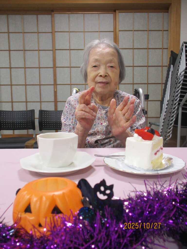 お部屋をハロウィンのカボチャや可愛らしいおばけを飾りつけ、楽しく過ごして頂きました。