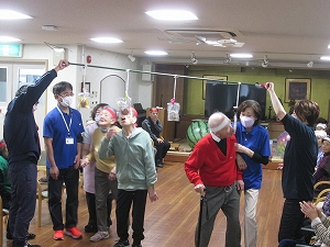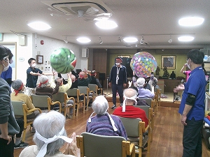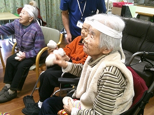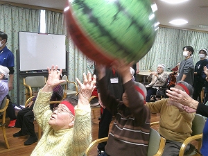 スイーツ争奪戦は、パン食い競争の要領で行いました。
