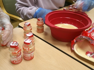 今回デザートも作りました。以前ヤクルトさんの健康教室があったので、ヤクルトを使ったゼリーを作りました。