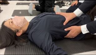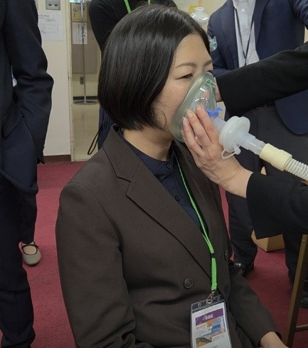 また、ハンズオンセミナーでは、徒手による呼吸リハビリテーションの手技紹介、排痰・気道クリアランスの機器操作と体験、摂食嚥下リハビリテーションの紹介と嚥下障害の体験をすることができ、現場に活かせる技術や指導方法を教わっています。