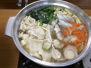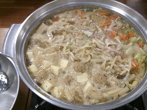 昼食にはお鍋を2種類提供。貝だし鍋とみそ鍋です。