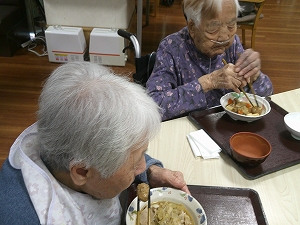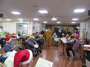 おなかいっぱいになった後は午後からボランティアの方による歌。オカリナやアコーディオンの演奏に合わせてご利用者の方も歌を一緒に歌って、楽しまれました。