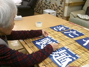 まずは前日に看板作りから。ご利用者に手伝っていただきました。