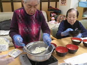 当日になり、うどんをゆでたり…