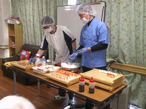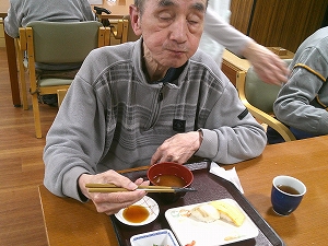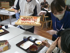 今回は昼食に握り寿司レクを行いました。お寿司を握っていただきました~