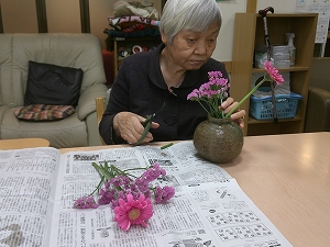 昔、生け花の先生をしていた方にお花をいけていただきました。